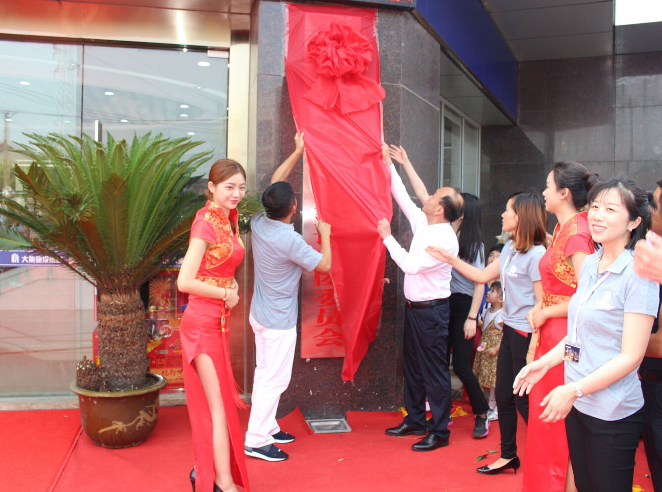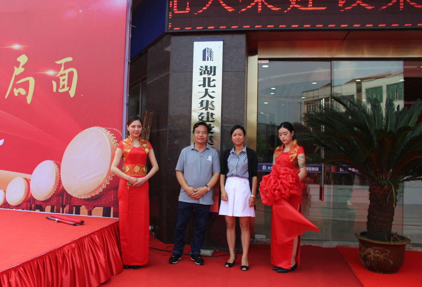 10:38分,當(dāng)徐董事長、街黨委曹書記共同攜手揭開中國共產(chǎn)黨湖北大集建設(shè)集團委員會的牌匾,總經(jīng)理徐遠征、街工委王主任攜手揭開湖北大集建設(shè)集團有限公司的牌匾時,喬遷慶典的高潮環(huán)節(jié)正式開始!