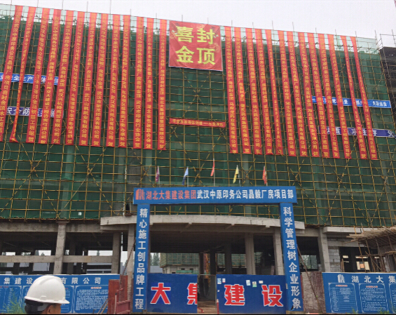 2017年6月27日,歷時(shí)一年時(shí)間,在湖北大集建設(shè)集團(tuán)重質(zhì)量、保安全、趕工期、抓進(jìn)度的配合下,中原印務(wù)1#樓主體順利封頂。集團(tuán)董事長(zhǎng)徐濤、總經(jīng)理徐遠(yuǎn)征、副總經(jīng)理徐家富及該項(xiàng)目重要骨干陪同中原印務(wù)董事長(zhǎng)及其公司高層領(lǐng)導(dǎo)共同見(jiàn)證這一喜慶時(shí)刻。