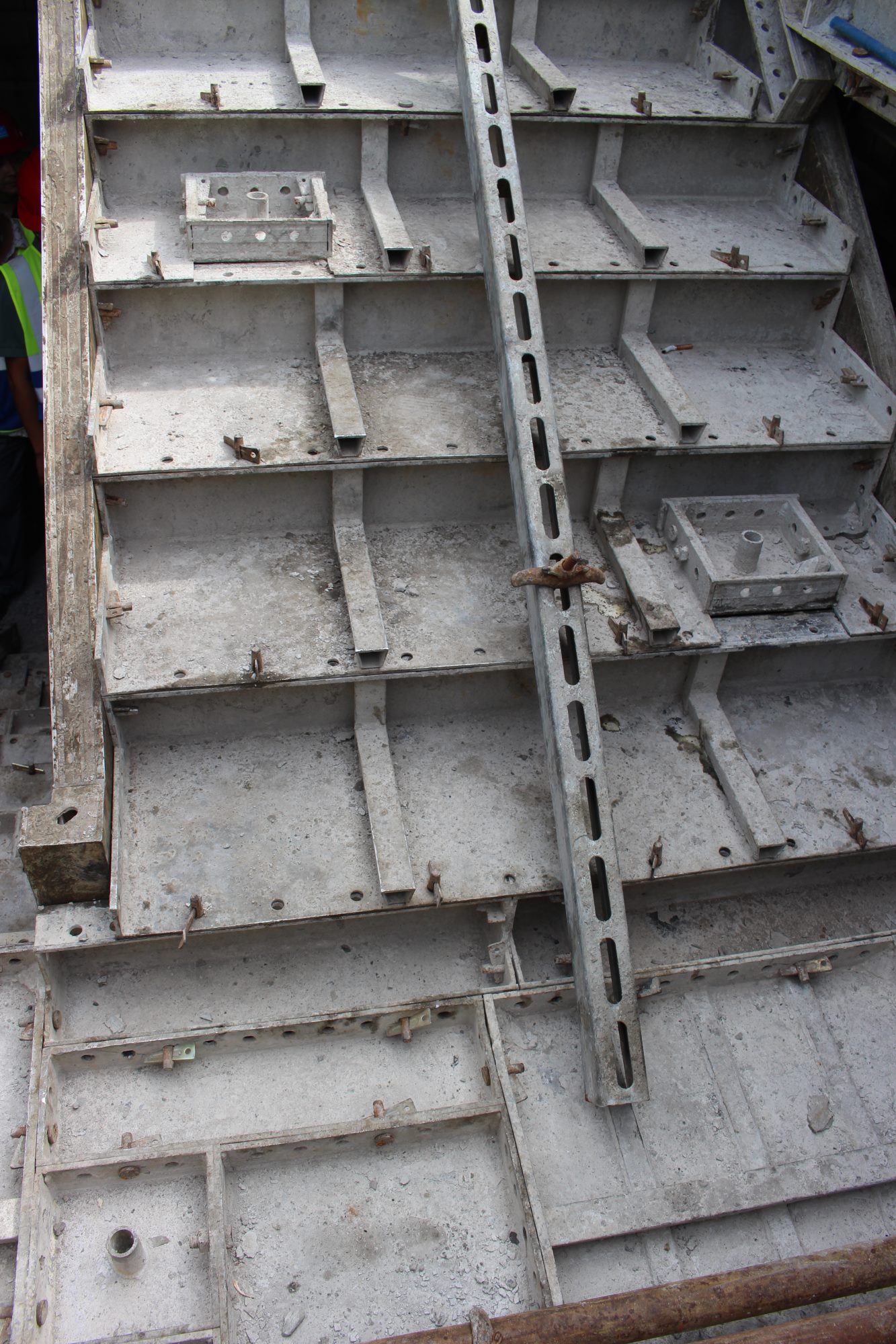 在楊泗港項(xiàng)目現(xiàn)場,大家近距離了解了爬架的工作原理、拼裝方式以及布設(shè)情況,并仔細(xì)觀摩了鋁模的施工工藝以及支撐體系,通過與現(xiàn)場講解人員的溝通,對(duì)鋁模技術(shù)的應(yīng)用有了更深入的認(rèn)識(shí)。此次的觀摩學(xué)習(xí)讓各位項(xiàng)目經(jīng)理及施工員受益匪淺,對(duì)新工藝也有了更直觀、更深刻的感受和比較。