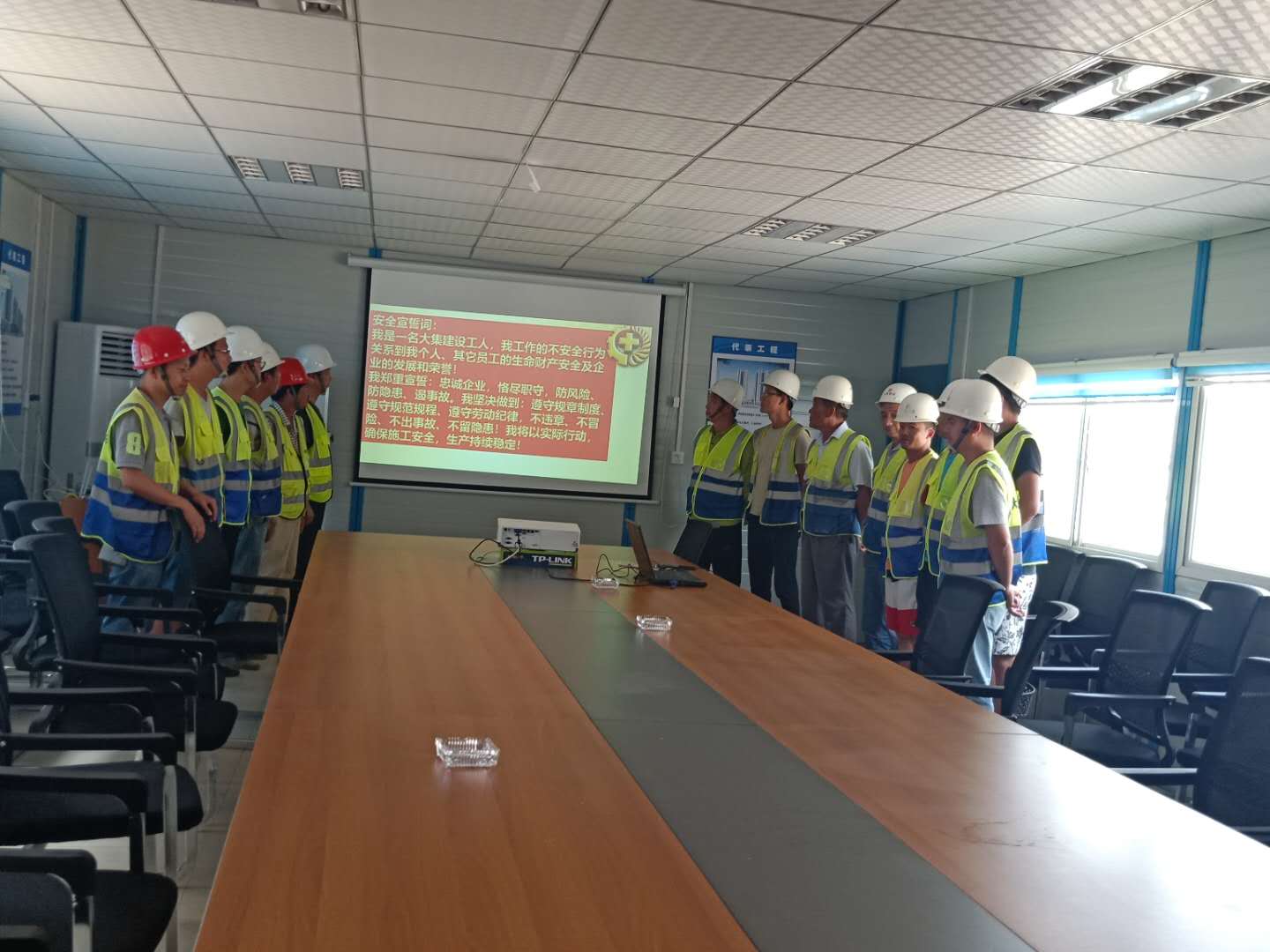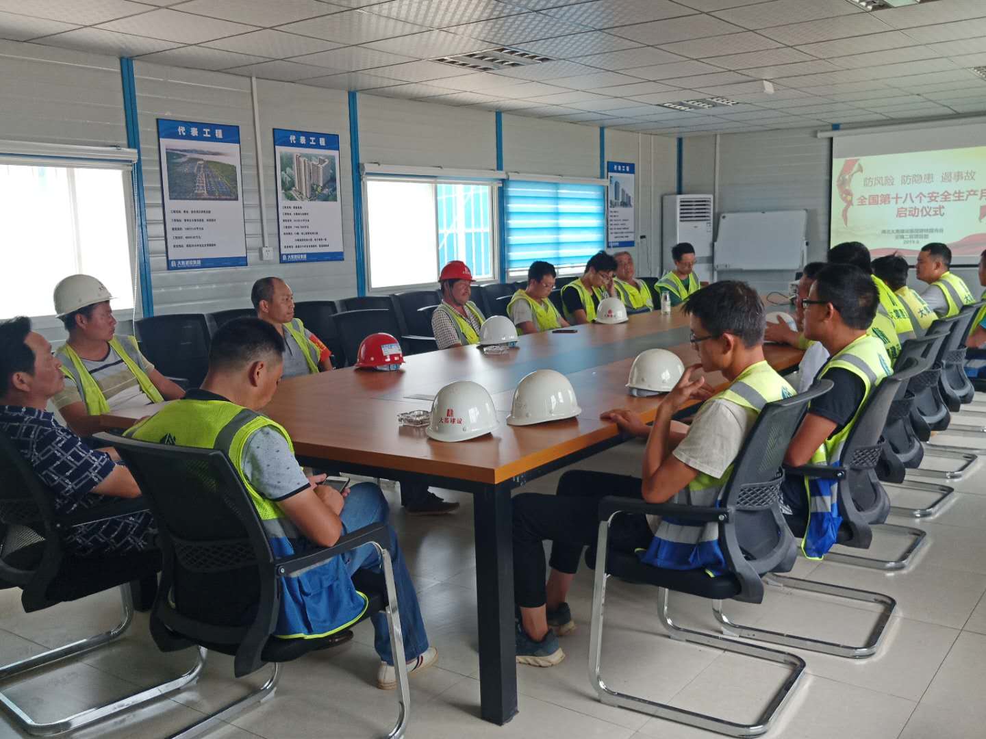 啟動儀式上,生產(chǎn)經(jīng)理陳超首先向大家講解了防范化解重大風險,及時消除安全隱患,有效遏制生產(chǎn)安全事故的重要性,并著重強調(diào)了夏季高溫防中暑的各項安全措施、夜間施工現(xiàn)場照明及檢查監(jiān)督事項。隨后,組織了全體人員進行安全月活動的宣誓。通過集體安全宣誓,進一步推動了現(xiàn)場施工人員由“要我安全”為“我要安全”觀念的轉(zhuǎn)變,現(xiàn)場施工人員也紛紛表態(tài)要堅守安全生產(chǎn)這條紅線,確保工程項目順利安全推進。