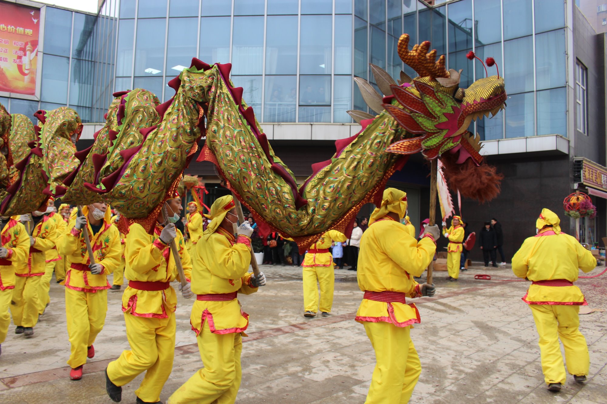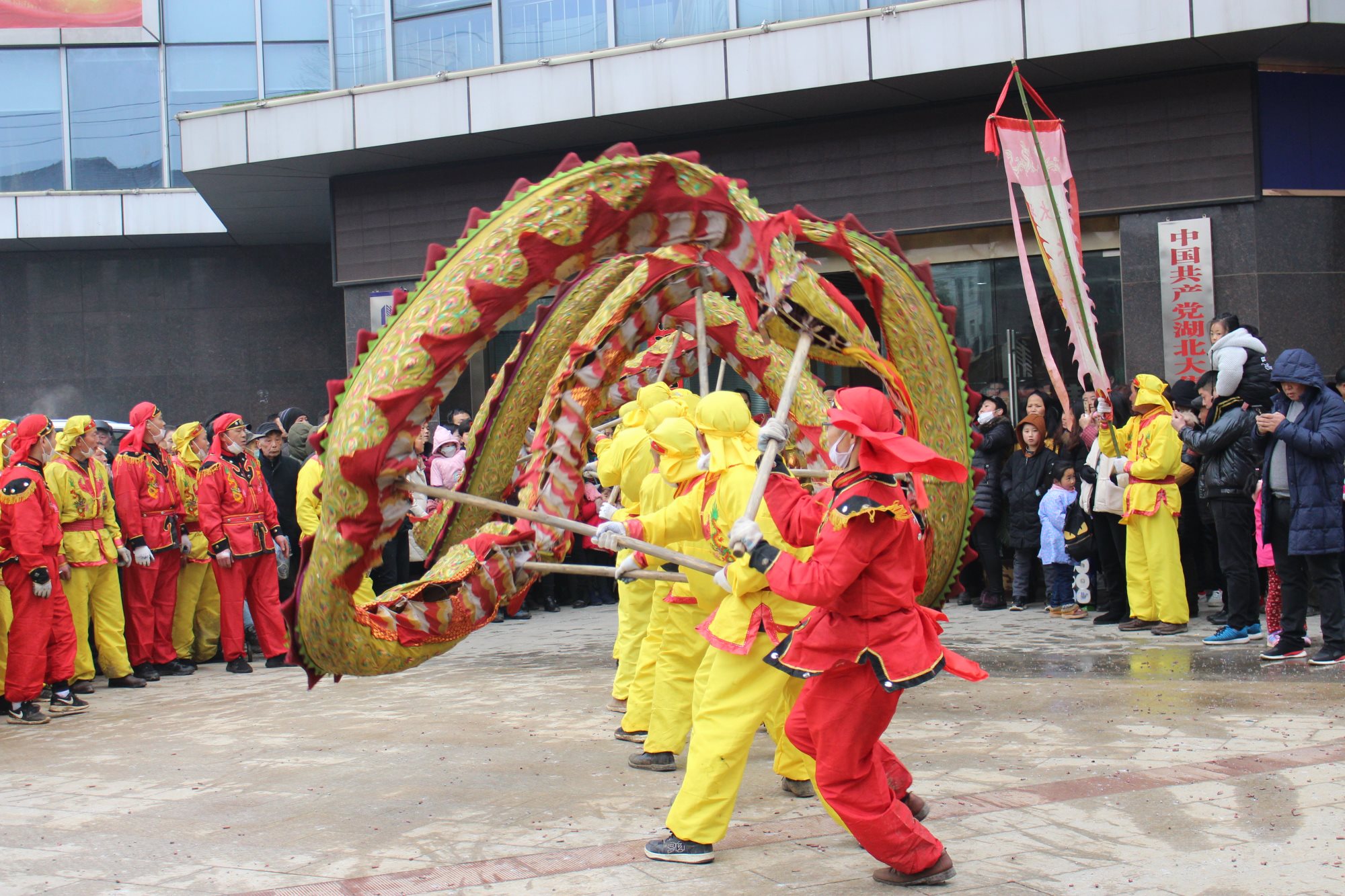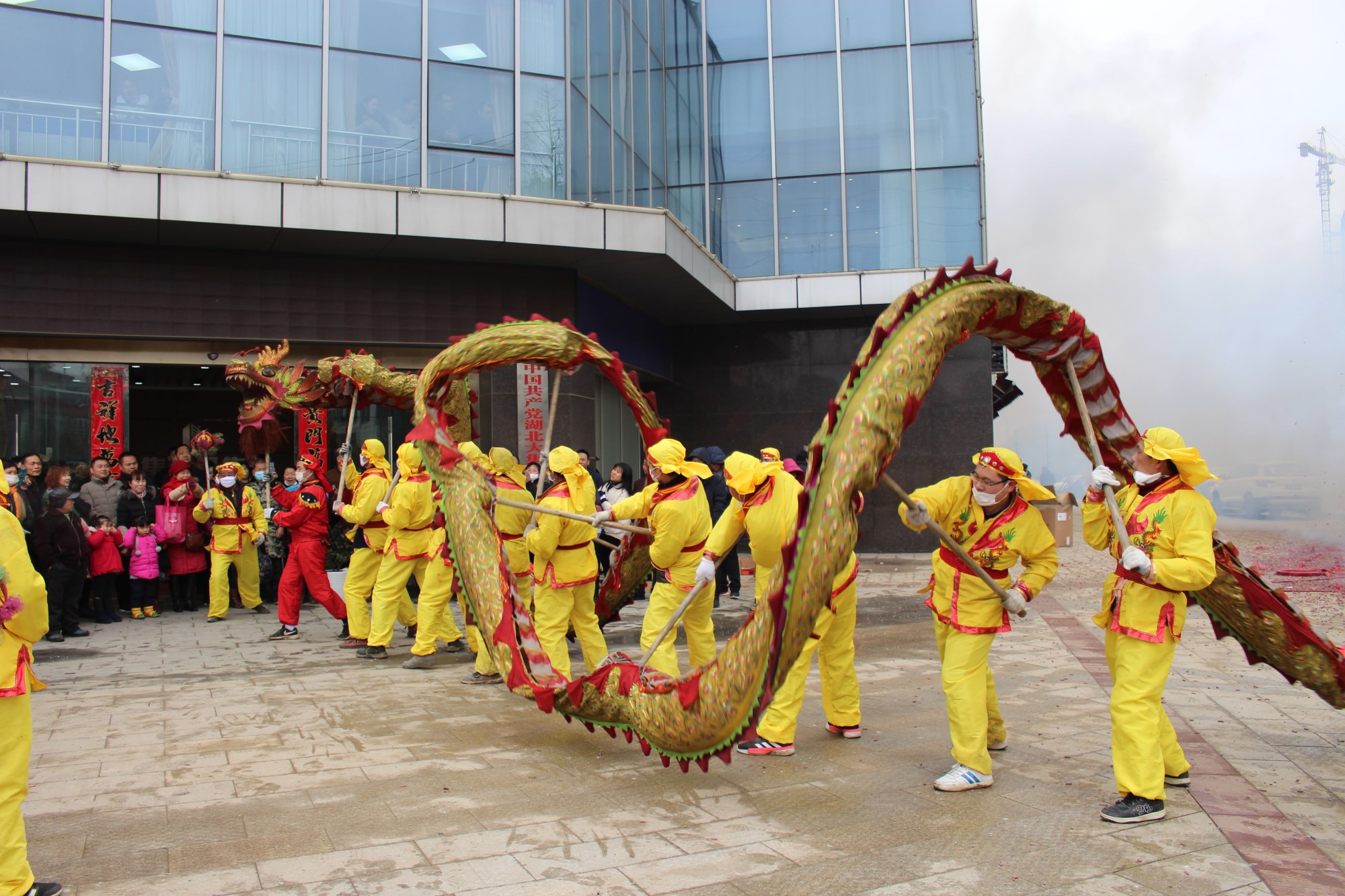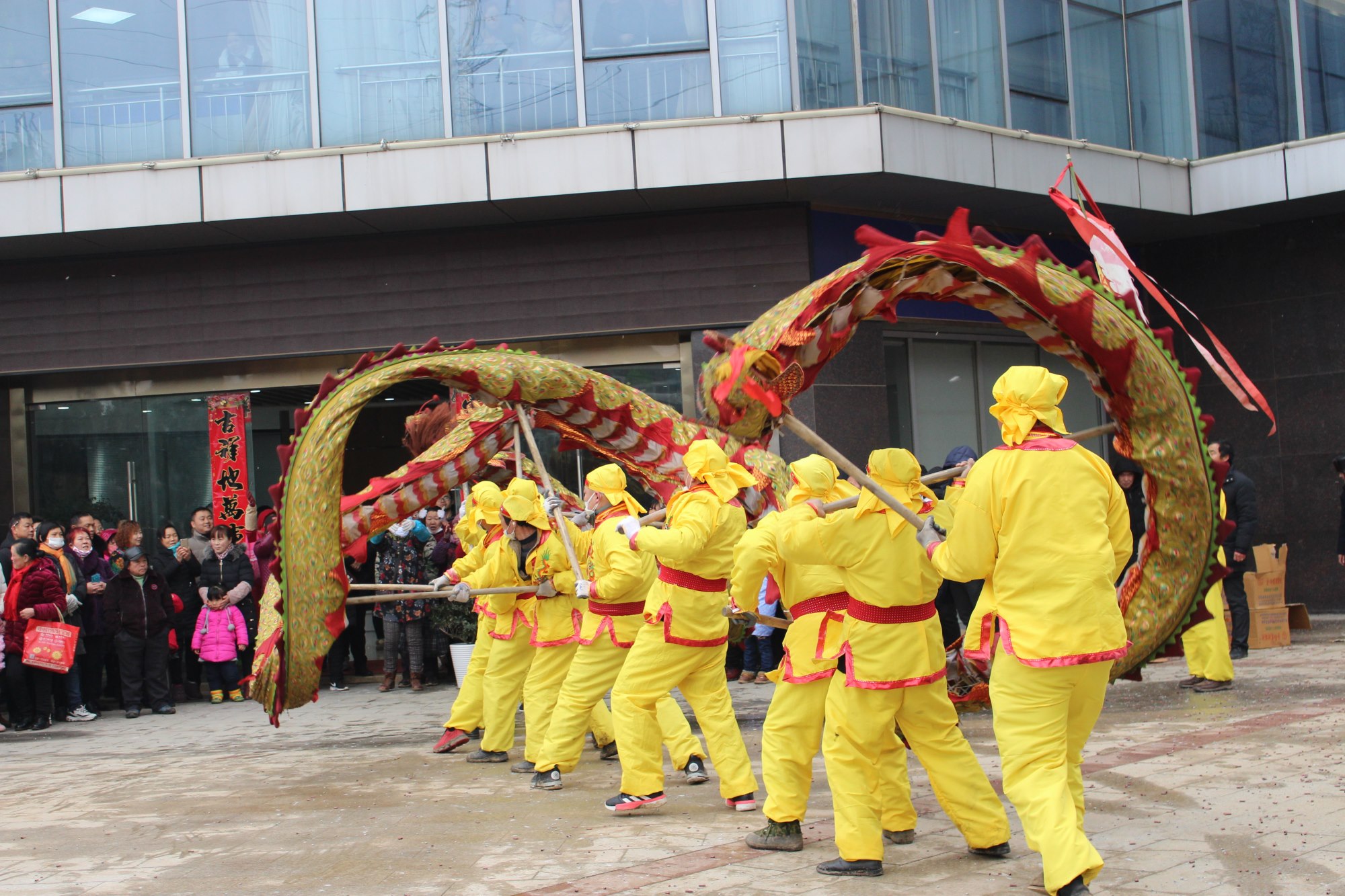 在喜慶鑼鼓和震天鞭炮的伴奏下,“巨龍”時而蜿蜒纏繞、時而盤旋騰舞,龍隨樂舞,騰空而躍、盤旋翻滾,千姿百態(tài),令人目不暇接,把新春的喜慶氣氛渲染得淋漓盡致。